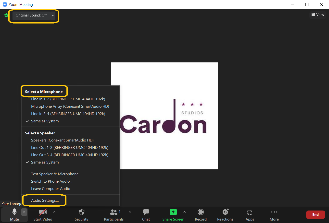 - If you need to adjust your Audio Settings further, you can access them in the lower left corner, as pictured.
